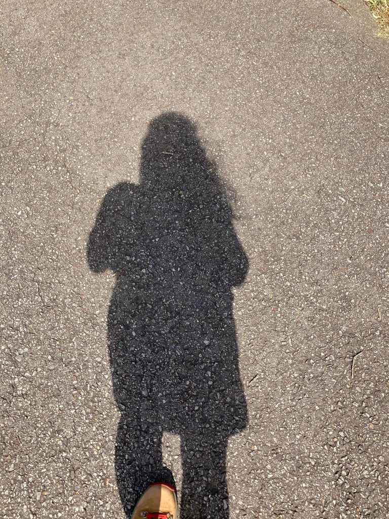 Reason tells me she’s been with me my whole life, but sun on the walking path has put her in view a lot lately. I started snapping photos of her and occasionally, videos. The videos I quickly erase because I think she walks so strangely and she’s a little girthy strolling out in front of me.