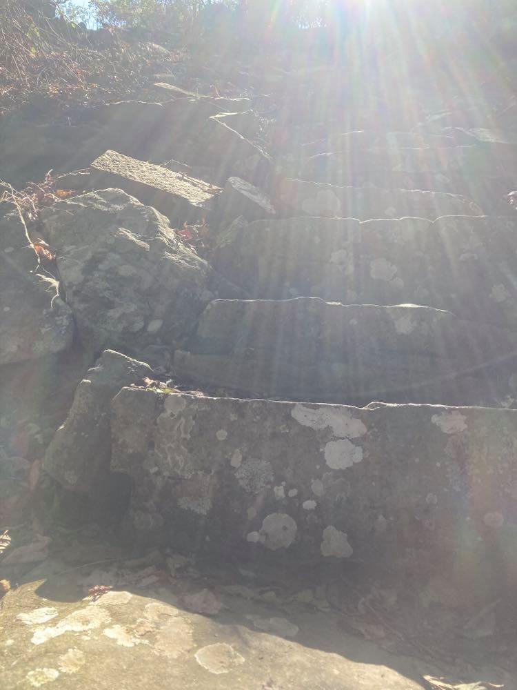 The afternoon I arrived on Nebo I found there is a trail that is very steep and made of many stepping stones. My legs ached the next day from going that stony way. The pain made me think of my own life-path and the way the pain had strengthened me for the next leg of the journey. The sign read, “Steps Trail”, but in my mind it looked just like Ebenezer stones and my altar coming to life just under my feet. I couldn’t help thinking it.